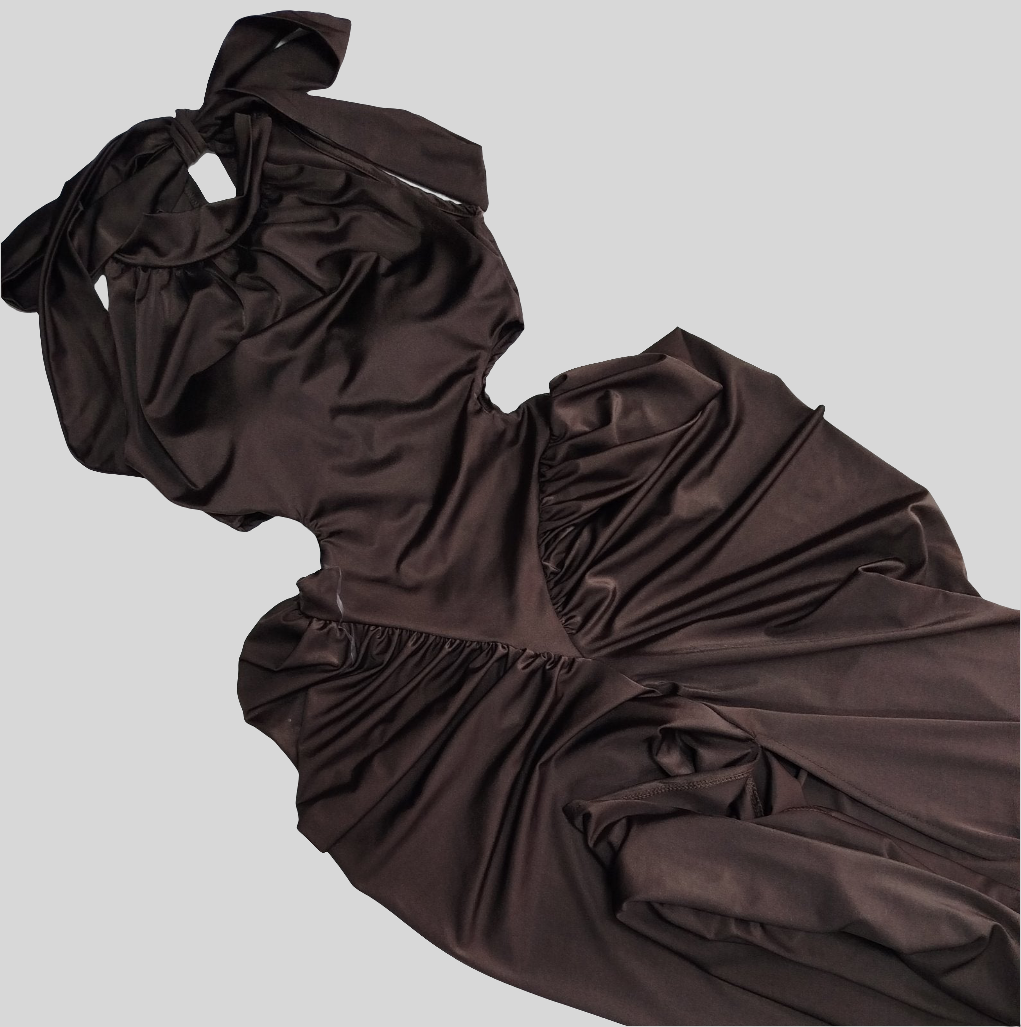Duga haljina sa vezanjem oko vrata i otvorima sa strane