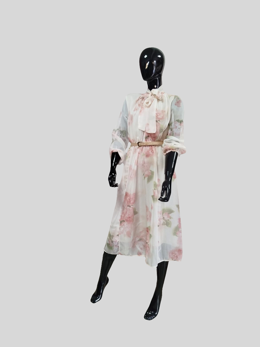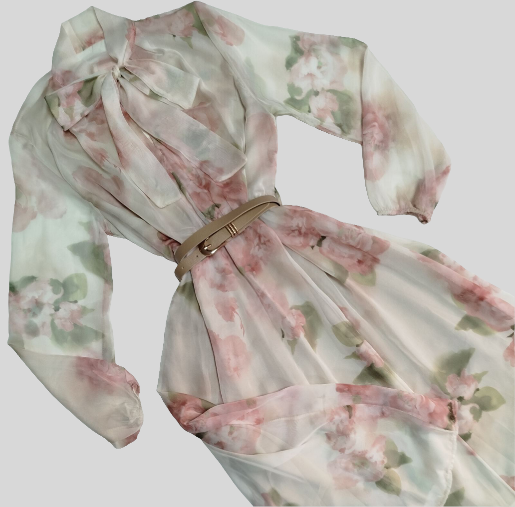 Lepršava haljina sa mašnom. Dužina ispod koljena
