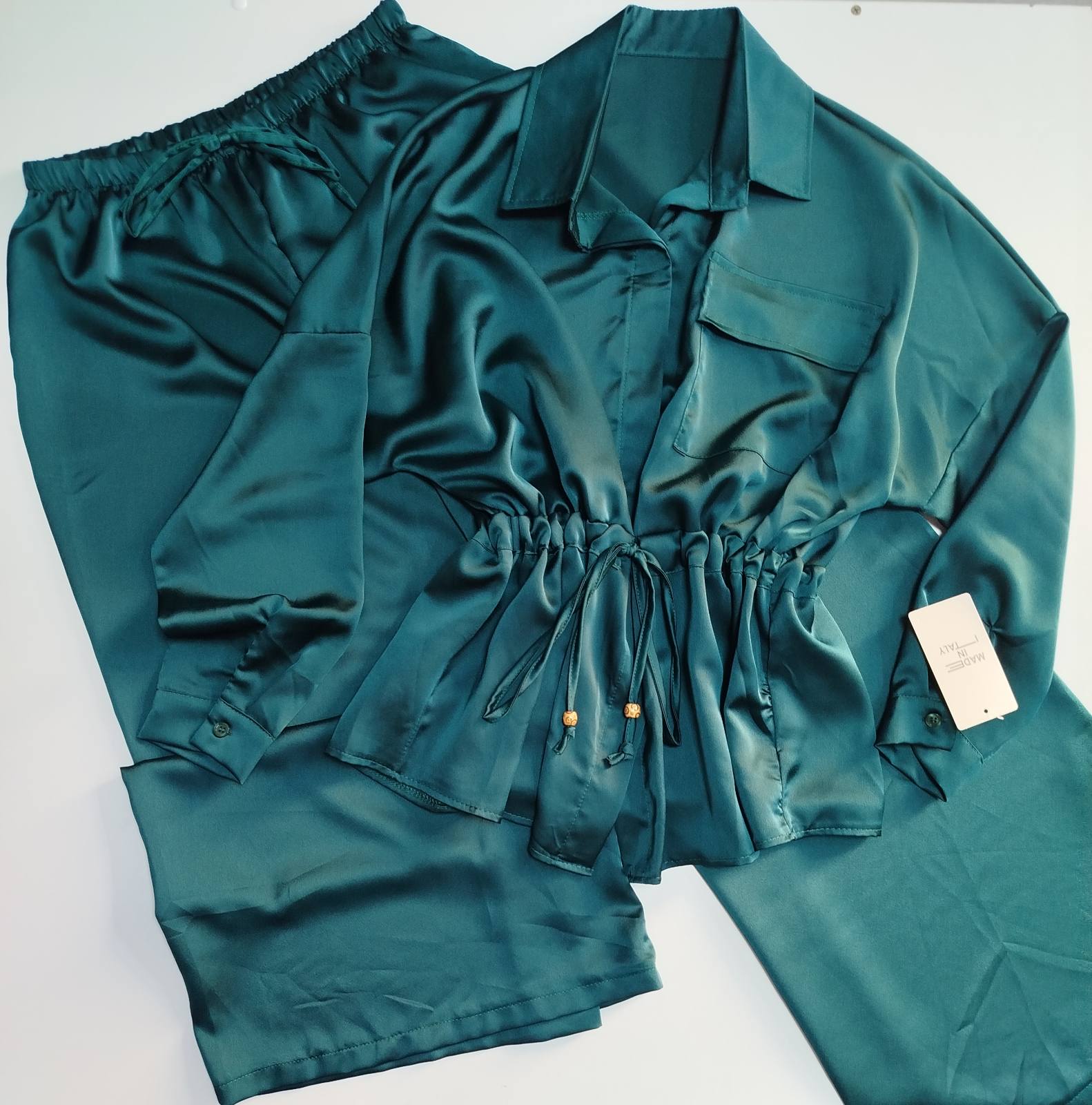 Svileni komplet košulja i hlače sa širokom nogavicom