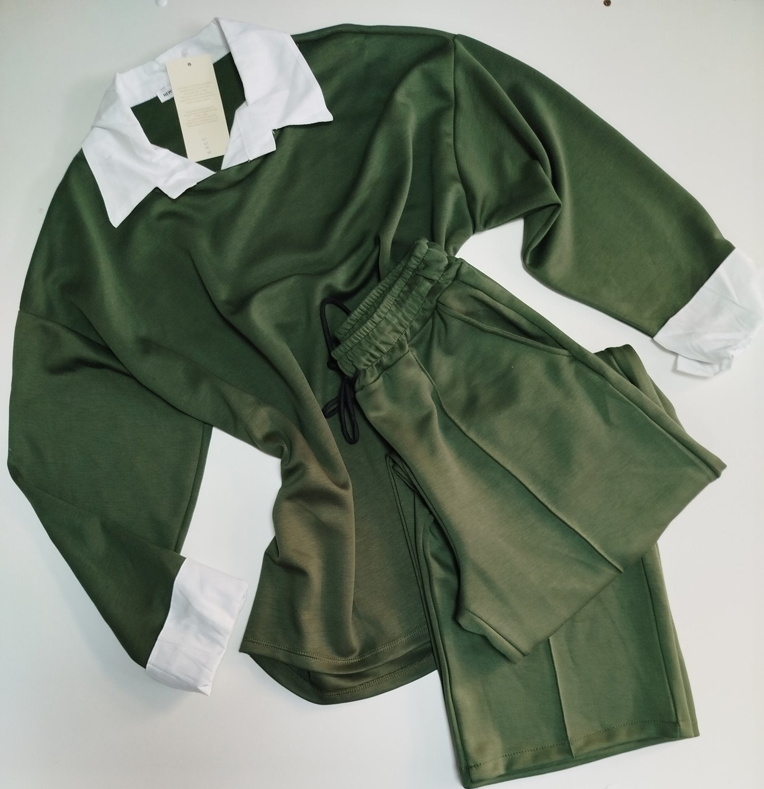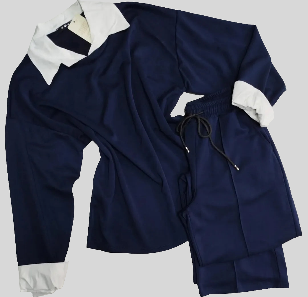 Pamučni komplet hlače i majica sa imitacijom košulje