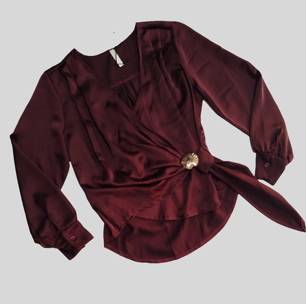 Svilena košulja na preklop sa brošem