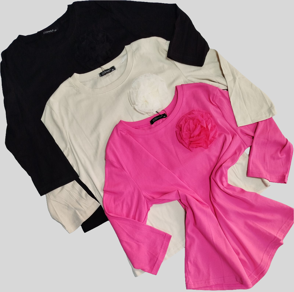 Pamučna majica sa 3/4 rukavom i ukrasnom ružom