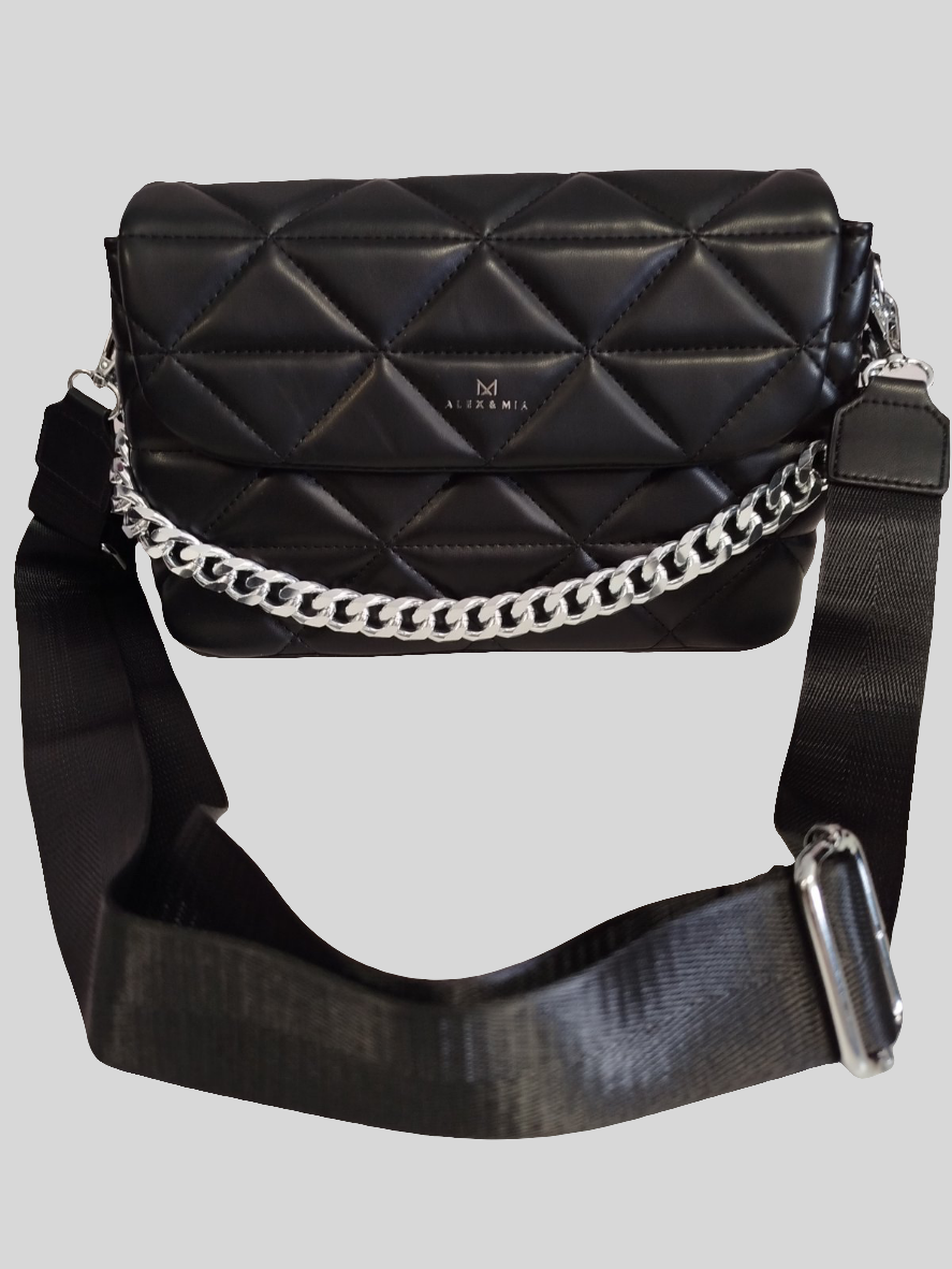 Torba od eko kože Alex&Mia. Preklop sa magnetnom kopčom. Ukrasna ručka u vidu lanca koja se može skidati. Široki kaiš sa podešavanjem.